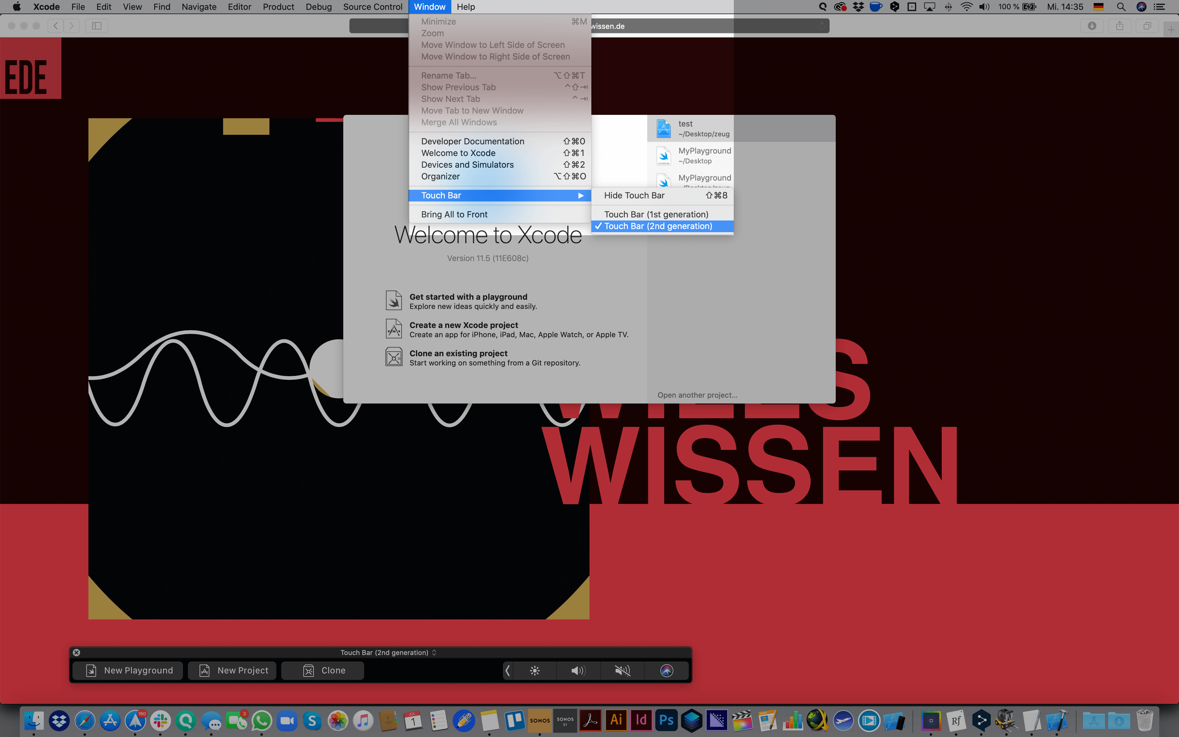 Öffnet diese nun anschließend und bestätigt die Installation aller Zusatzmodule. Dann klickt oben in der Menüleiste auf „window“ und dann auf „Touchbar“. Fertig. Jetzt habt ihr eine fliegende Touchbar, die soweit ich das sehe, alle Funktionen der „echten“ Touchbar hat.